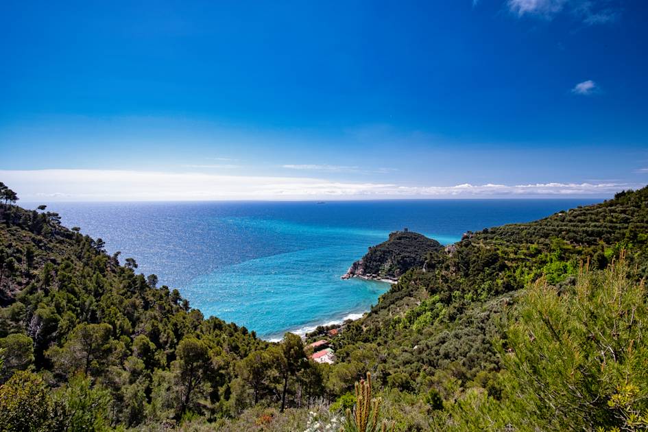 Perhaps the biggest challenge on this route comes right at the start, climbing steeply out of Varigotti from Via Strada Vecchia. The benefit of this is that you get far-reaching views of the surrounding greenery, and out over Saracens Bay, quickly. On the route, you’ll pass the historic Church of San Lorenzo, as well as the Torre delle Streghe - also known as the Tower of the Witches. It was built in the 16th century to protect the border and today is a tall, stone ruin.