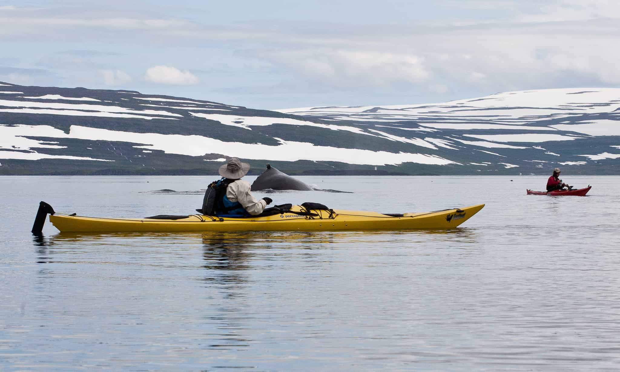 There are over 50 species of birds that come to breed in the Westfjords, including kittiwakes, guillemots, Arctic terns and puffins. Two species of seals are very common and 12 species of whales can be spotted off the coast of North Iceland, including blue, fin, minke, sperm and humpback whales. Pods of orca, porpoises and white-beaked dolphins are also in these waters. The most commonly seen whale species on this trip are humpback whales, who come here in big numbers to feed in the summer. While it's not 100% guaranteed that you will encounter one, the chances are quite high and it is a spectacular experience to kayak near these creatures.